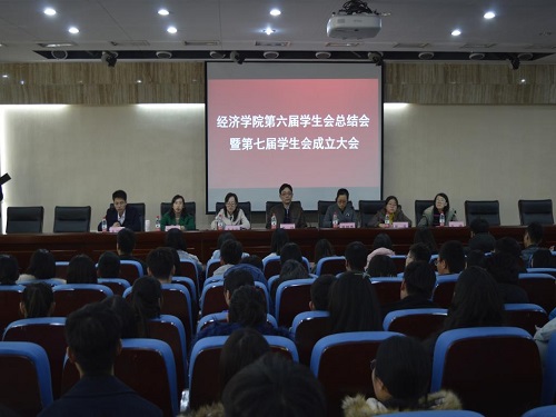 2018年11月22日,经济学院第六届学生会总结会暨第七届学生会成立大会在圣井校区敏行楼B5-101举行。经济学院党委书记姜伟,学工办主任周新秀,党委专职组织员李冰封,就业办主任裴斐,团委书记付雯,正科级辅导员王琦,辅导员朱海林出席会议。第六届学生会主席、第七届学生会全体成员参加会议。会议由周新秀主持。