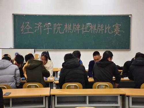 11月24日下午,经济学院于圣井校区敏行楼举办“牌沙简金,棋乐无穷”棋牌大赛。比赛由经济学院学生会社团部主办,经济学院棋牌协会承办。
