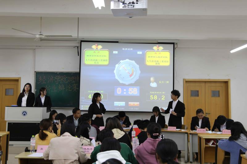 为营造勤于思考、善于思辨的学术文化氛围,激发我院学子探索真理、追求真知,提高语言表达和逻辑思维能力,推动学风建设,11月9日晚19:00,经济学院于圣井校区敏行楼教室举行“宏辞善辩,一鸣‘经’人”2019级新生辩论赛决赛。各二级学院辩协负责人担任评委,我院决赛班级参辩选手和观众到场参加。