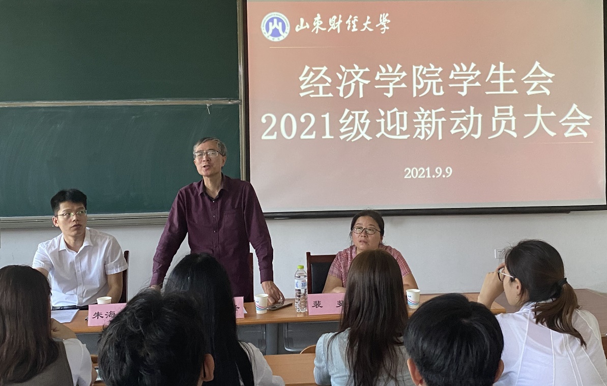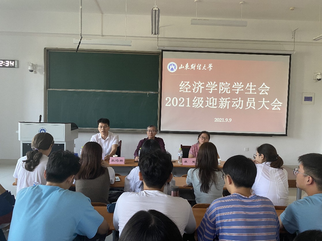 9月9日中午,经济学院于圣井校区7号教学楼召开经济学院2021级迎新动员大会。经济学院党委副书记高峰、学工办主任裴斐、新生辅导员朱海林出席会议。会议由裴斐主持,学院学生会全体迎新工作人员到场参加。