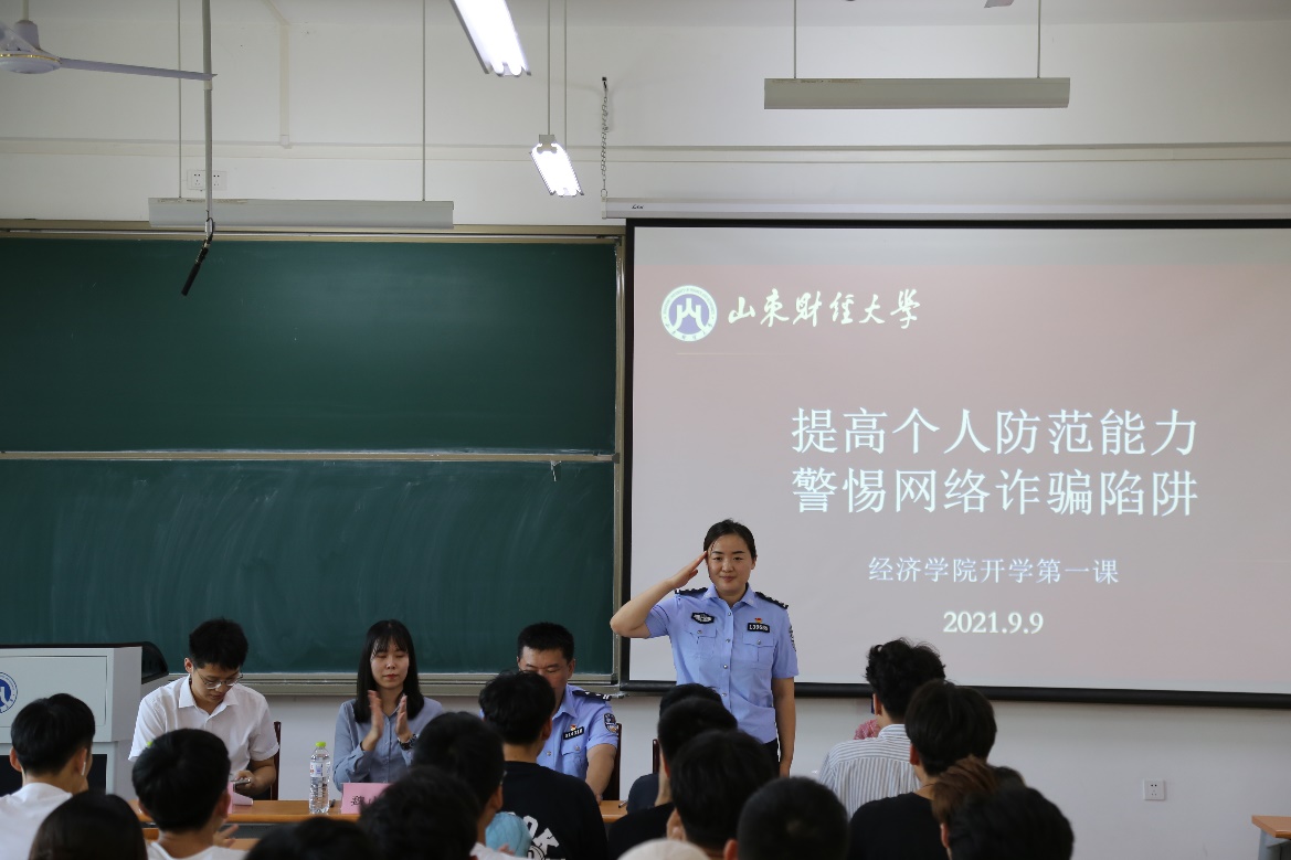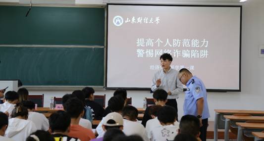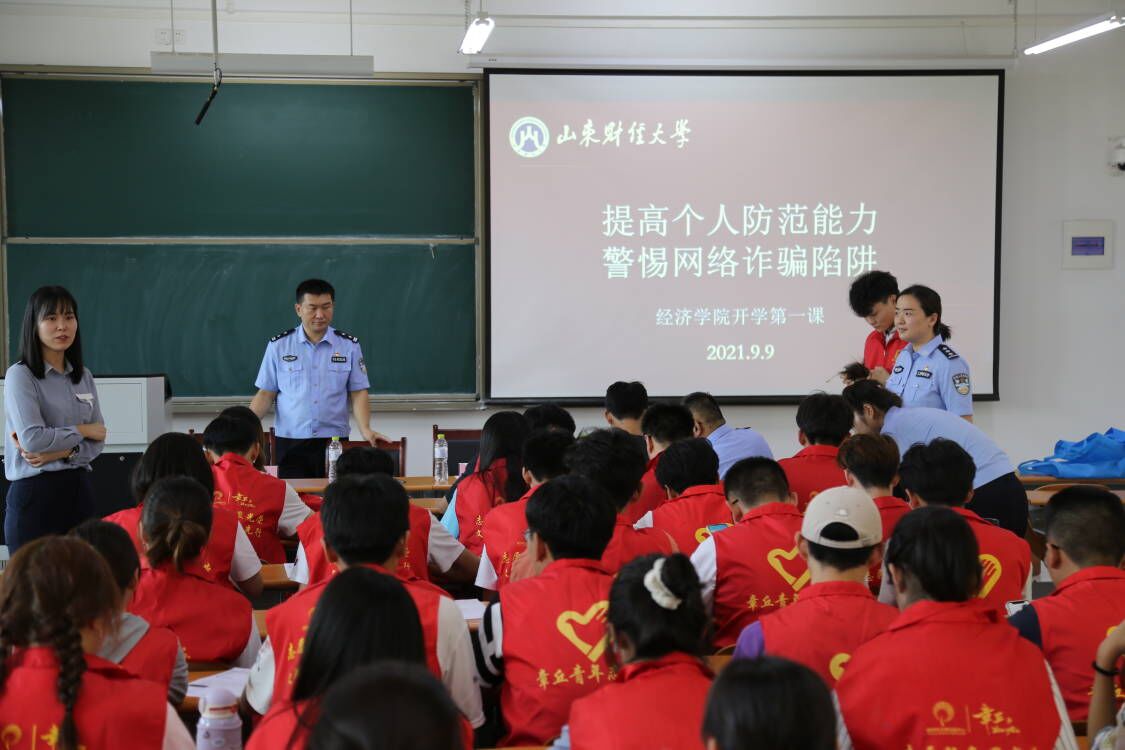 防范电信诈骗是一项长期性、系统性工作,章丘圣井派出所进校园积极开展“反诈骗”动员宣传工作是我院开学第一课的重要组成部分,旨在增强同学们的识骗防骗意识,为经济学院全体同学们打造和谐平安稳定的学习环境。