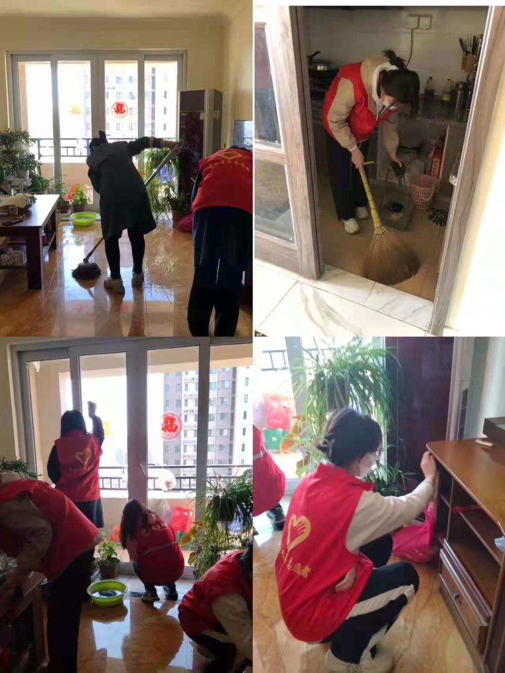 在独居老人家中,志愿者以饱满的热情、积极的干劲,帮老人打扫卫生、做家务,陪老人聊天,帮助行动不便的老人解决实际困难和问题,提升老年人社区生活归属感和幸福感。