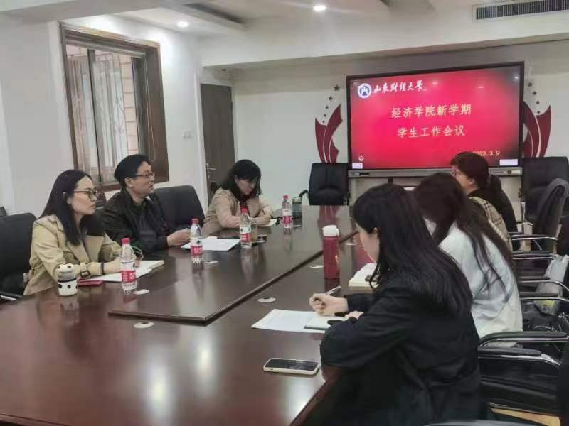 3月9日下午,经济学院召开新学期学生工作会议,学院党委书记姜伟、党委副书记李冰封、陈静及全体辅导员参加会议,会议由党委副书记李冰封主持。