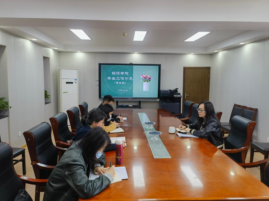 经济学院“学工沙龙”是学院落实“三全育人”工作体系,实施学生工作队伍育人能力提升计划的重要举措,自本学期开学以来已成功举办三期。下一步将继续通过院内学工队伍交流和院内外嘉宾分享的形式,以轻松舒适的交流环境和畅所欲言的交流氛围,努力把“学生工作沙龙”活动打造为学生工作队伍交流经验、探讨工作、共享成果、提升能力、研究理论的平台,同时积极将其打造为经济学院学工队伍建设的亮点和特色。