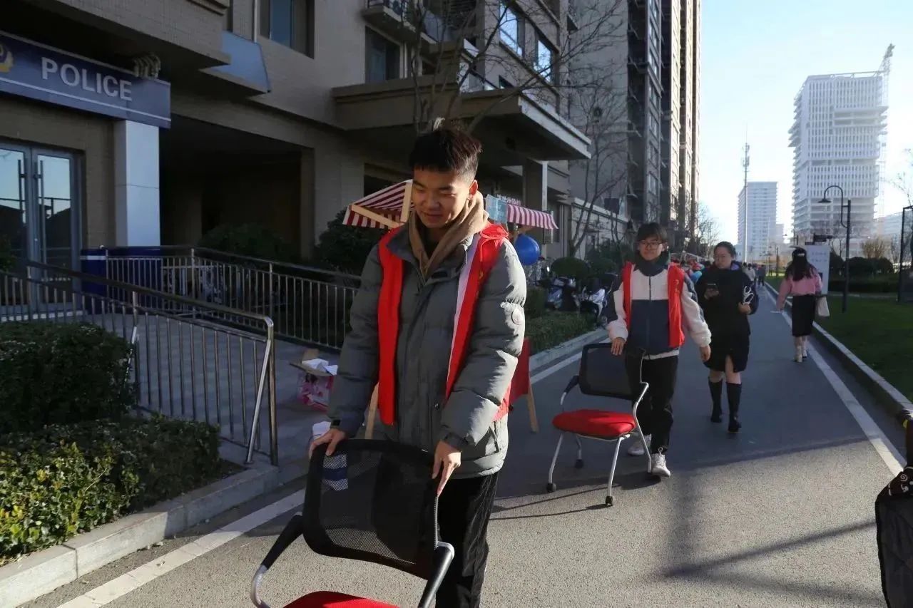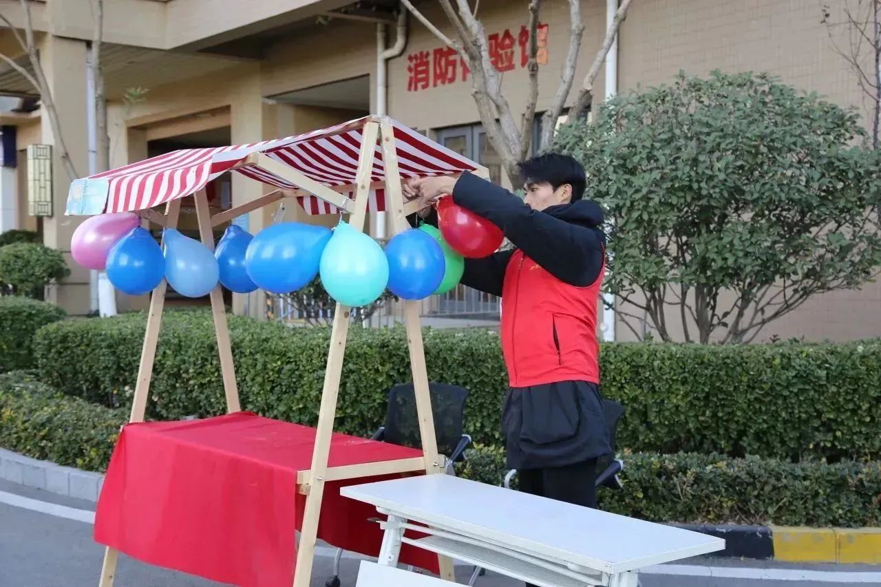 冬日暖阳,晴空碧澄。志愿者们早早地来到圣井碧桂园社区党群服务中心,帮助社区工作人员布置公益市集摊位,拉横幅、吹气球、摆放桌椅、铺设装饰、搬抬工具。30位志愿者在社区工作人员的指导下,完成了口腔检查、中医问诊、视力检查、爱心义剪、磨菜刀、裁缝铺、修眉毛、小家电维修、 手工编织、鲜奶酸奶等十余个摊位的布置工作。