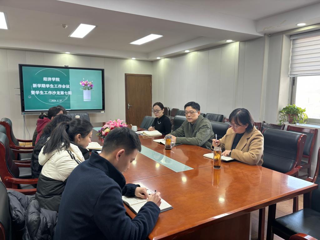 姜伟对学工队伍的辛苦付出、履职尽责和敬业奉献表示了感谢,充分肯定了上学年学院学生工作团队在队伍建设、助力学生成长成才、就业创业等方面取得的成绩,同时希望大家再接再厉,完善已有的工作体系,形成一套成熟的经验和做法,开创经济学院学生工作新局面。姜伟对新学期学生日常管理、心理健康教育、消防安全、毕业生就业等重点工作进行了部署,并对新学期的工作提了三点要求:一是要求大家做实做细学生管理的常规性工作,积极应对新问题,思想上丝毫不能放松;二是调整好个人的状态和心态,以良好的面貌和积极的心态一如既往做好学生工作;三是抓好本职工作的同时科学规划好个人的发展,力争做到工作和个人发展两不误。