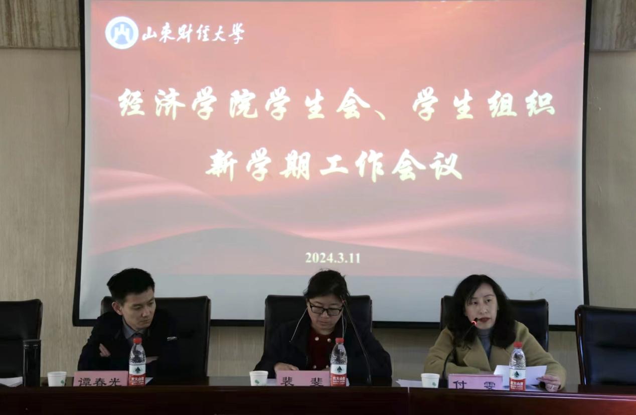 3月11日上午,经济学院召开学生会、学生组织新学期工作会议。经济学院学工办主任裴斐、团委书记付雯、辅导员谭春光出席会议,经济学院第十二届学生会、学生组织全体成员到场参加。会议由谭春光主持。