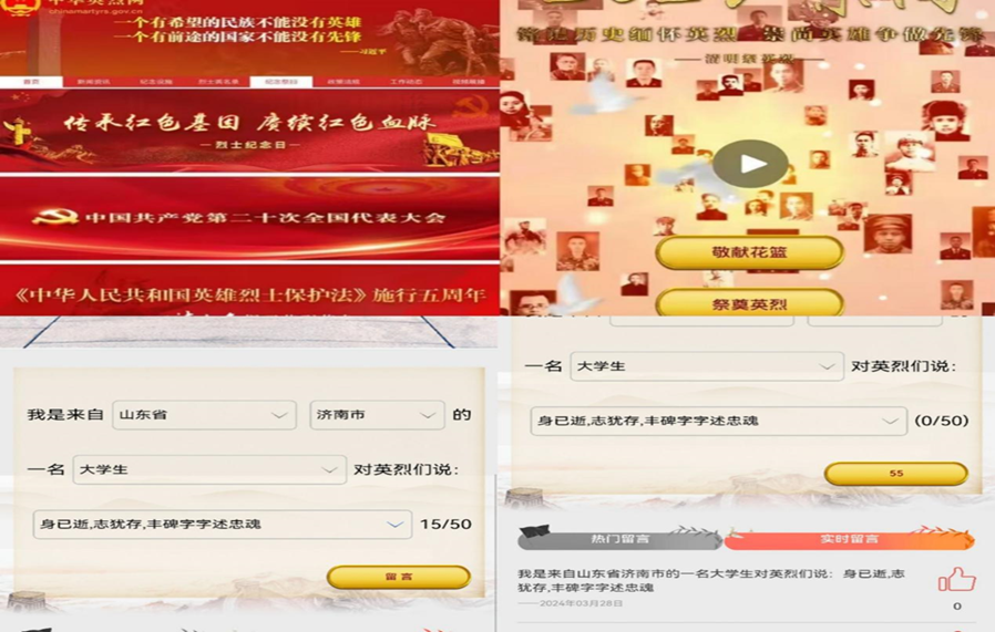 在“云端缅怀英烈志,网络共筑精神碑”清明节线上祭扫英烈活动中,学生登录中华英烈网,通过在线献花、留言寄语、观看英烈视频等多种方式,向英烈们表达敬意和怀念。