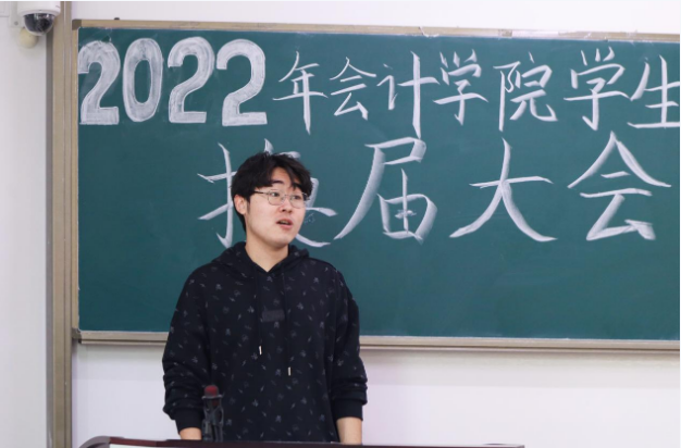 “赓续传承,接力前行”,2021届学生会主席逄文博对上一年学生会的工作进行总结,细数在防疫背景下会计学院学生会在工作上取得的一系列成就,并表达了对新一届学生会的期待。2022届学生会主席高东铭也总结了近期学生会所组织活动和所获得的积极反响,并且对学生会接下来的工作规划进行了汇报。