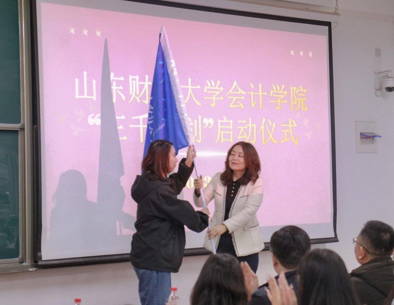 钟毓卓亲自为三千计划优秀代表授旗,充分体现会计学院党委对同学们的深切关怀的同时,也标志着全院打响2023年度会计学院三千计划实践活动“第一枪”,全面吹响实践调研“集结号”。