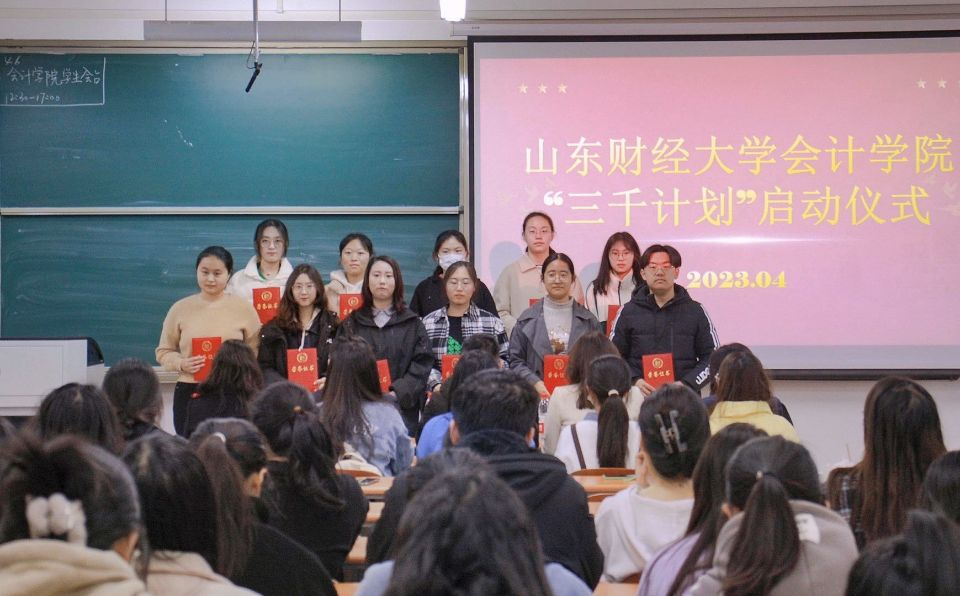 为深入学习贯彻习近平总书记的重要讲话精神,更好发挥“三千计划”作为我校实践育人品牌的作用,鼓励更多学子躬身实践,会计学院积极响应校团委号召,于4月6日在圣井校区6220举办2023年度“三千计划”社会实践活动启动仪式暨表彰大会。党委书记邵文涛、党委副书记钟毓卓、院长助理韩跃及各年级辅导员出席,启动仪式由会计学院团委书记张慧娟主持。