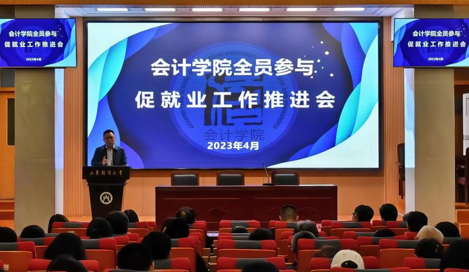 为深入学习贯彻落实党的二十大精神,进一步落实好国家就业优先战略,强化就业优先政策,健全就业促进机制,促进毕业生高质量充分就业,4月13日下午,会计学院在燕山校区三号教学楼报告厅召开全员参与促就业工作推进会。会计学院全体教师参加此次会议。会议由党委书记邵文涛主持。