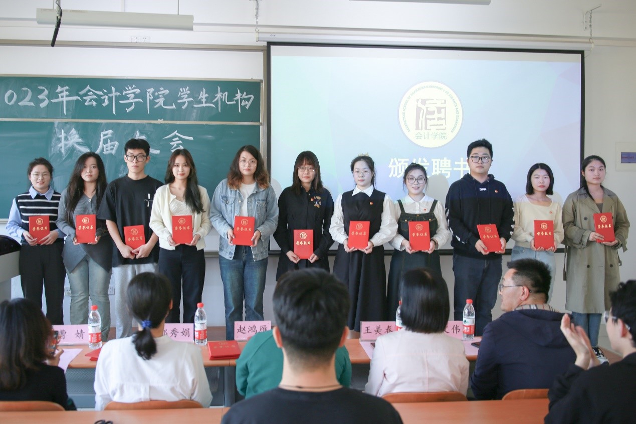11月2日下午,2023年会计学院学生机构换届大会在6124教室举行。会计学院全体辅导员出席,大会由团委书记张慧娟主持。