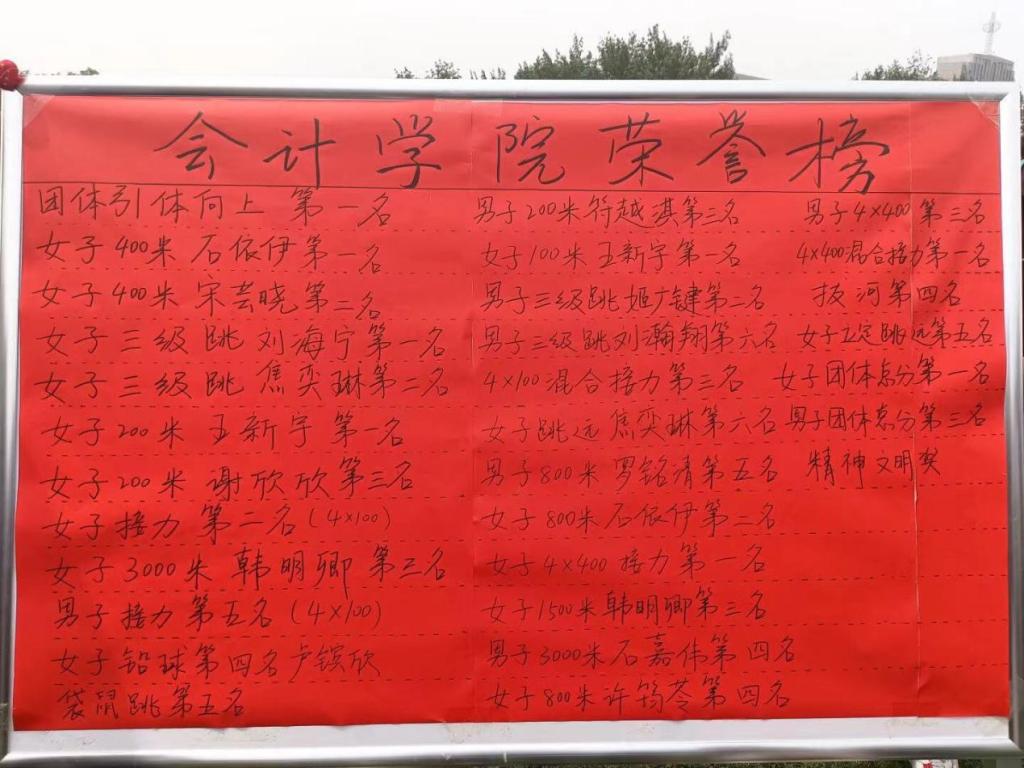 迎着春风,在会计学院全体人员的共同努力下,学院荣获女子团体总分第一名、男子团子总分第三名以及精神文明奖的佳绩,这不仅仅是荣誉的象征,更是会院学子坚韧不拔、勇往直前的精神的体现。