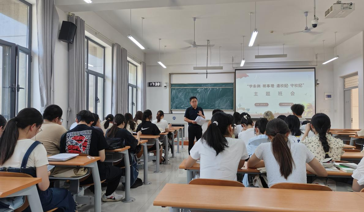 2024年6月11日,会计学院党委书记邵文涛在23级智能会计班,召开“学条例·明事理·遵校规·守校纪”主题教育班会。