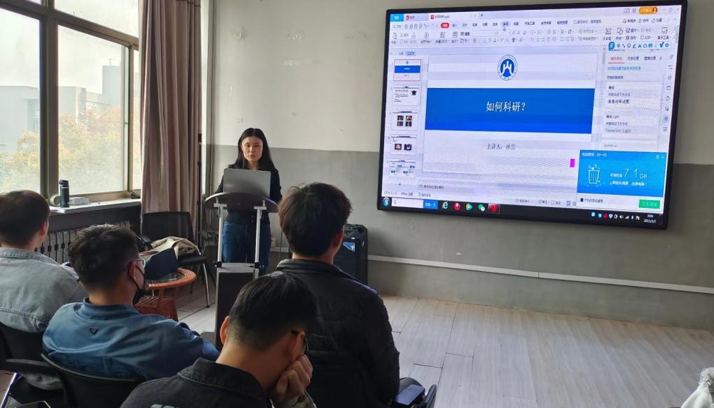 为拓宽研究生学术视野,提升科研能力,促进师生交流,11月9日上午,计算机科学与技术学院在燕山校区1404会议室举办科学研究专题讲座。本次讲座由今年新入职的林雪博士担任主讲,研究生辅导员任楠主持,全体2022级研究生参加。