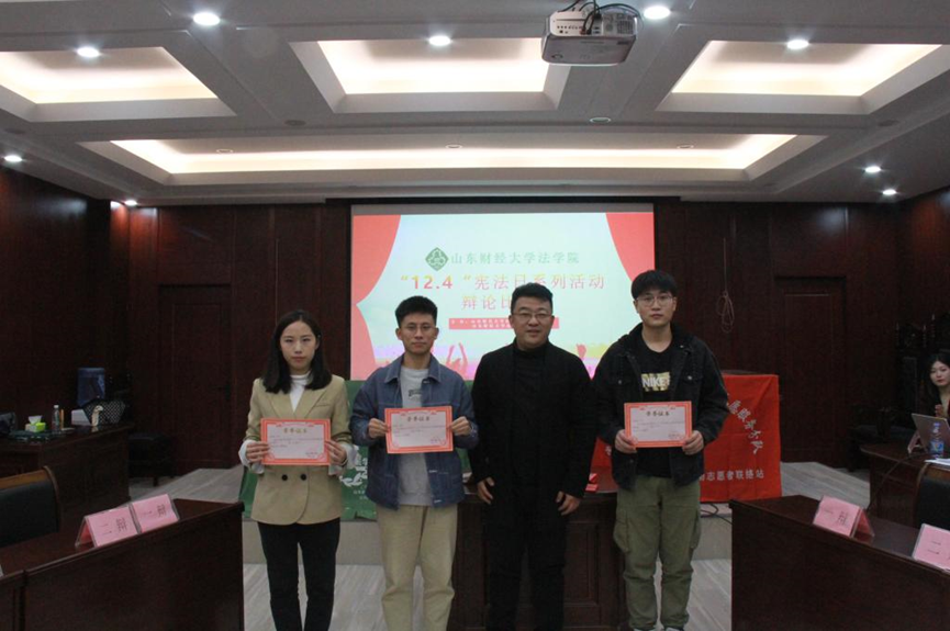 为弘扬法律文化,增强法学院学生之间的交流与协作,10月27日下午,我校法学院研究生会和法律援助中心在学院模拟法庭举办“12.4”宪法宣传日系列辩论赛活动。学院党委副书记沙林斌、刘岩博士、本科生辩论协会成员、部分研究生参与本次活动。