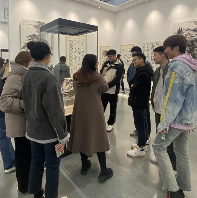 艺术学院党委副书记赵连幸和副院长袁慧敏为法学院师生详细介绍了馆中展出的优秀作品,这些作品既具有传统的韵味,又展现出现代创新的特点,展示了传统与现代艺术的和谐共生。随后,法学院师生自行参观馆内展品,或拍照留念或交流心得体会。