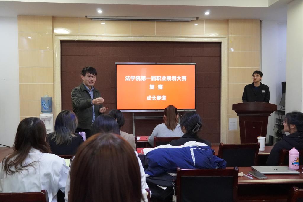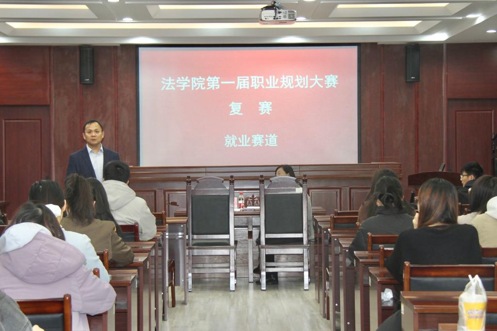 为了帮助法学院学生树立就业理念、了解就业形势,提升职业规划能力,11月15日-23日,法学院组织了第一届职业规划大赛,本次比赛分初赛和复赛,复赛部分于11月23日下午和晚上分三个赛段在燕山校区模拟法庭与4616教室全部完成。本次复赛的评委由法学院党委副书记沙林斌、就业办主任郭蕾、团委书记赵金鹏和2023级辅导员杨玉霜担任。