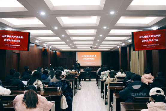 2023年12月21日晚,法学院在模拟法庭举办了第五期研究生学术沙龙。本期沙龙的主题是“经济领域的法律应对”,共有六名硕士研究生同学围绕该主题汇报了自己的研究成果,法学院于朝印教授、刘中建教授、王华副教授、赵建良副教授等参会点评,沙龙由刘岩博士主持,共有约六十名硕士研究生参加。