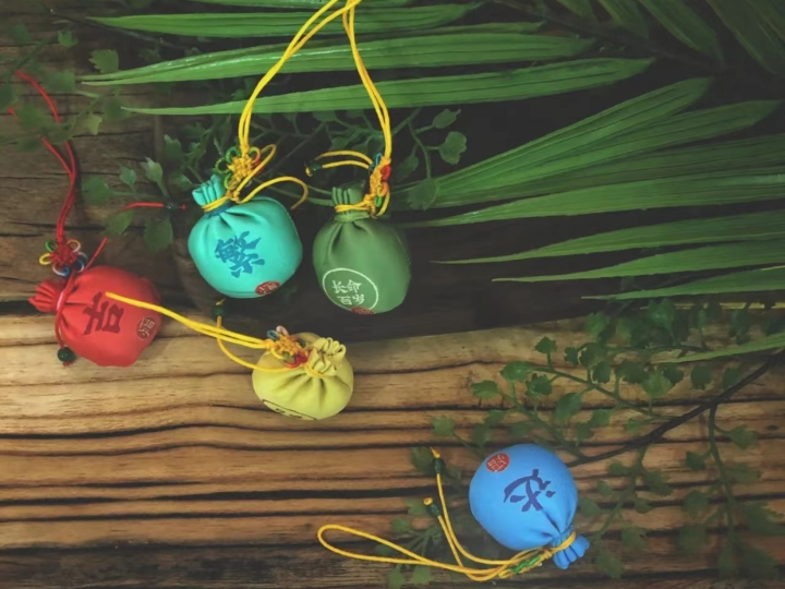 端午节小孩佩香囊,传说有避邪驱瘟之意