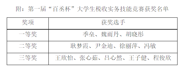 本次“百丞杯”大学生税收实务技能竞赛将严谨的专业理论与深刻的实战案例结合,充分激发了我院学子参与学习税收实务技能的热情。相信财税学子定会脚踏实地、虚心求学,掌握更扎实的理论知识和更娴熟的专业技能,为财政税务学院书写更加辉煌的明天!