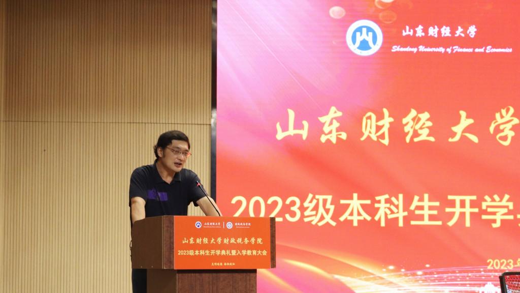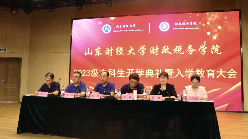 9月19日下午,财政税务学院2023级本科生开学典礼暨入学教育大会在圣井校区文体学术报告厅举行。财政税务学院党委书记刘波,院长李森,党委副书记张代宝、滕晖,副院长赵宝廷,教师代表宋颜群以及全体辅导员老师出席会议,2023级全体本科生参加会议。大会由党委副书记滕晖主持。