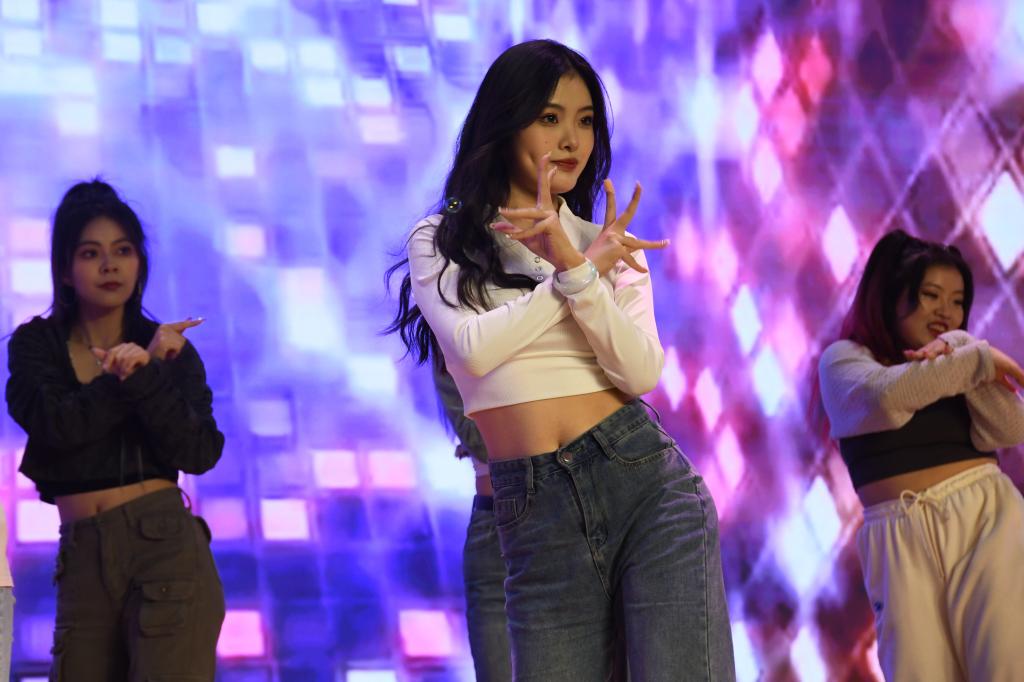 晚会最终章《逐梦前行》一开始,爵士串烧《Girls》就把全场的气氛推向了高潮,台上舞者们坚韧有力的舞姿展现了管理科学与工程学院青年蓬勃的朝气和向上的活力。