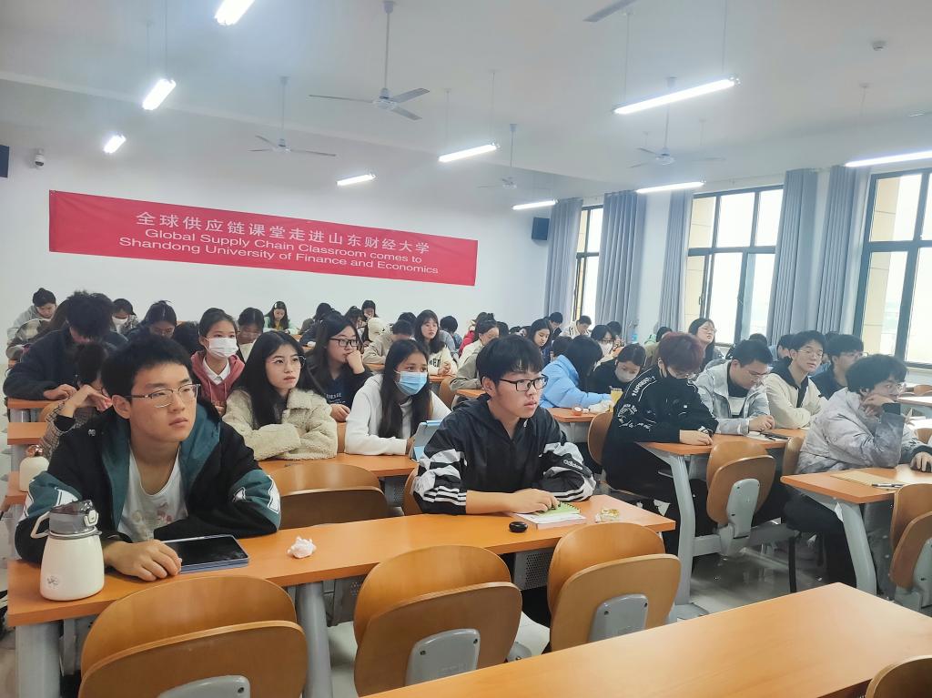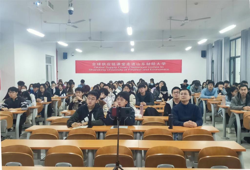 为培养学生全球化意识,提升学生综合素质,开拓学生眼界,管理科学与工程学院于11月12日上午8:30举行《全球供应链课堂走进山东财经大学》示范教学活动。本次活动特邀请全球供应链课堂联盟、中美物流联合会执行董事Chung Tam,美国罗德岛大学教授Koray Ozpolat,美国罗德岛大学教授Douglas Hales进行讲授,全球供应链课堂董事、中美物流联合会秘书长李茜协助进行协调以及翻译工作。教学活动由管理科学与工程学院物流管理系主任陈爱玲负责组织联系,物流管理系副主任聂彤彤主持。物流管理系教师葛岩、罗彦芳、李佳路、张正、孙岩、郭艳丽以及物流管理专业20、21级同学线下参加此次示范教学活动,物流管理系党支部书记阚功俭及物流管理系教师张媛媛、张正通过线上的形式参加此次活动。