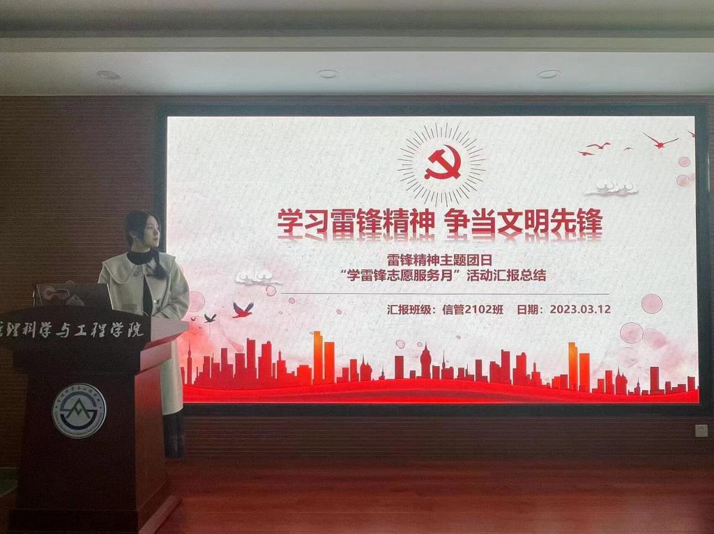 2023年3月12日,信管2班召开雷锋精神主题团日“学雷锋志愿服务月”活动汇报总结,团支书从雷锋同志简介,什么是雷锋精神,雷锋精神时代内涵,雷锋精神具体内容以及纪念雷锋同志的意义五个方面对雷锋同志以及雷锋精神进行了系统而客观的讲解,同学们也踊跃发言,发表自己对雷锋精神的看法,并互相交流争做雷锋活动志愿者的体验与感受。