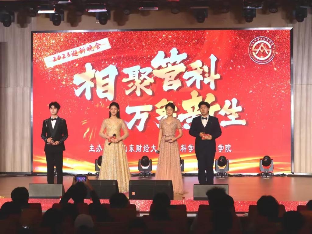 10月29日晚,“相聚管科万象新生”管理科学与工程学院2023年迎新晚会在圣井校区文化活动中心隆重举行。校党委学工部、校党委宣传部、校就业指导处、圣井校区管理办公室等职能部门负责人、部分兄弟院系的老师、学院领导班子、校友代表、全体辅导员老师以及教师代表与2023级全体新生共享此次精彩纷呈的艺术盛宴,其他年级学生通过线上直播观看了晚会。