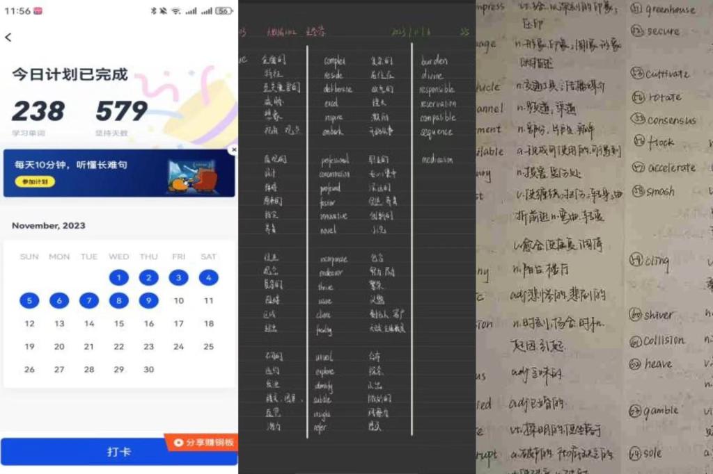 管理科学与工程学院于11月6日至26日开展“‘词’之以恒,‘英’有尽有”英语打卡、运动打卡以及早起打卡,有效激发了学生学习英语的兴趣,提高英语应用能力,促进学生们的健康意识和锻炼习惯的养成,帮助同学们拥有更多的学习时间,提高学习效率,得到了院内同学们的热烈响应,参与人次达160余次,其中87名同学坚持完成了21天好习惯打卡。