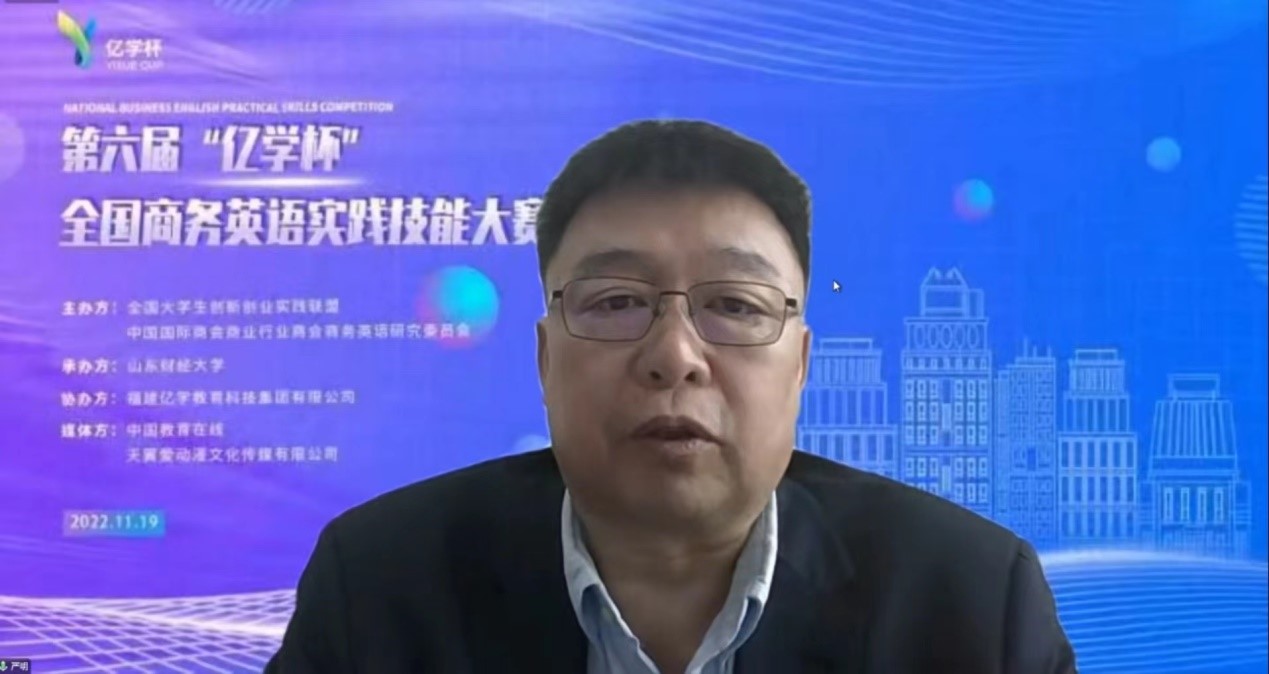 中国国际商会商业行业商会商务英语研究委员会理事长、黑龙江大学副校长严明在致辞中表示,“亿学杯”全国商务英语实践技能大赛的办赛理念与全国商务英语研究委员会的一贯宗旨不谋而合,推行“教、学、练、赛”一体化模式,旨在促进全国普通高等院校商务英语及相关专业的建设和教学改革。
