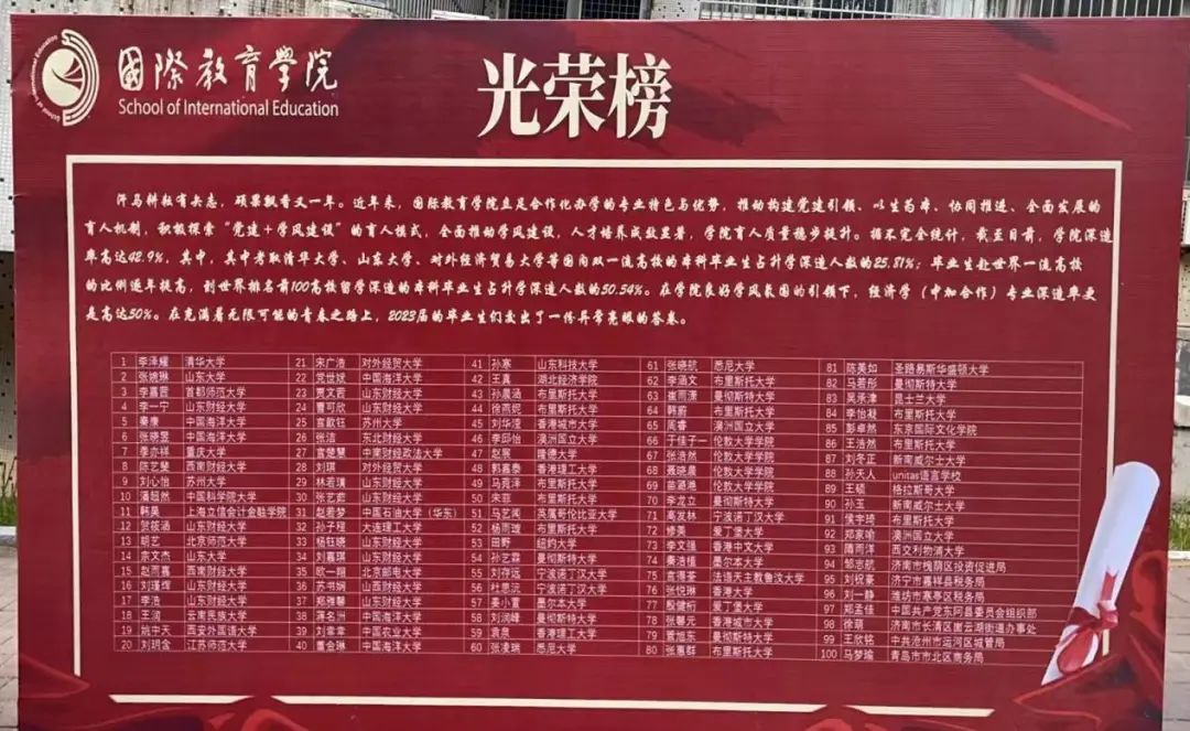 5日下午,国际教育学院学生会各部门的工作人员与志愿者们,早早完成了迎新现场的布置工作。本次国际教育学院迎新展板的设计融入了创新元素,展板以湛蓝为底色,由全体新生名字组成的“欢迎新同学”白字显得格外夺目,它展示了国际教育学院对新生由衷的欢迎,以及对新生们勠力同心、携手并进的期盼。另一侧的红色光荣榜上,详细介绍了国际教育学院2023届毕业生深造的具体情况,他们的榜样力量将激励新的国教学子们继往开来,再创辉煌。