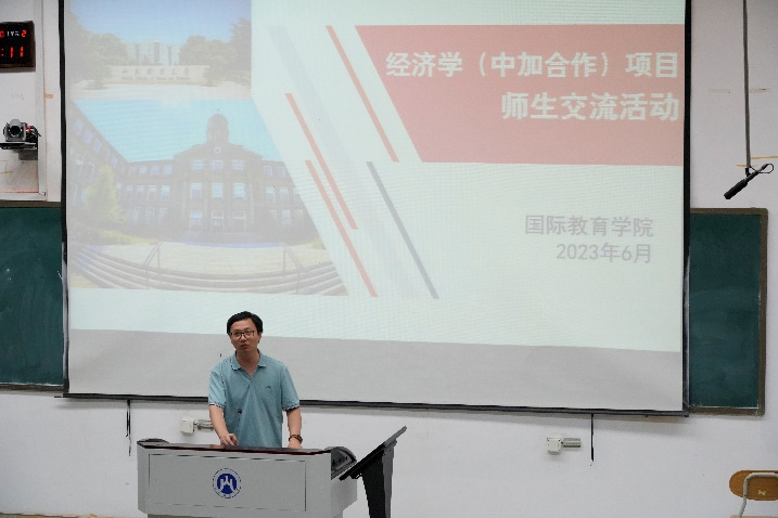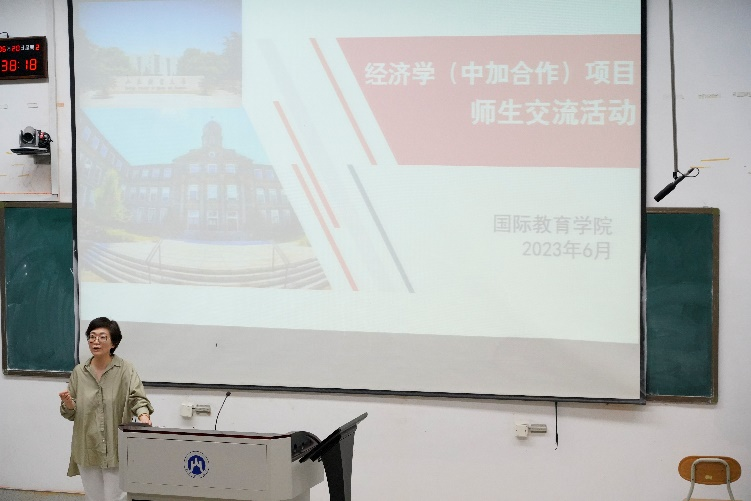 王英杰提到在今年春季,我校中加合作经济学项目荣获山东省高校中外合作办学示范工程项目立项,这代表着中加合作经济学这一项目已获得社会广泛认可。王英杰对今天师生交流活动的主题、内容和出席活动的各位领导、老师进行了介绍。