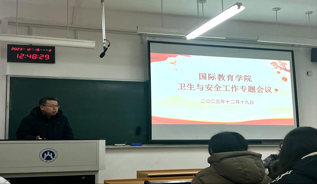 12月19日中午,国际教育学院在三号教学楼3108教室召开了卫生与安全工作专题会议。会议由党委副书记于栋主持召开,全体辅导员老师,学生会主席团、部长及各班班长团支书出席会议。