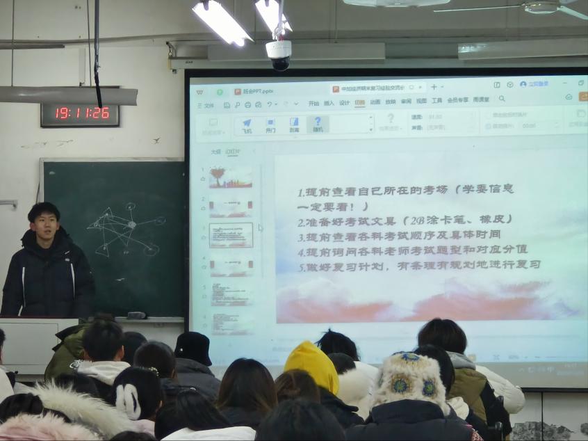 此次期末复习经验交流会为同学们分享了提高学习效率、增进理解与记忆、发现学习盲点、增强应试技巧的方法。通过学长学姐们的分享,同学们已经对期末考试有了一定的了解,在未来的大学生活中,还有更多的知识和领域等待大家去探索,相信大家在即将到来的期末考试中一定能够稳定发挥、取得优异的成绩。