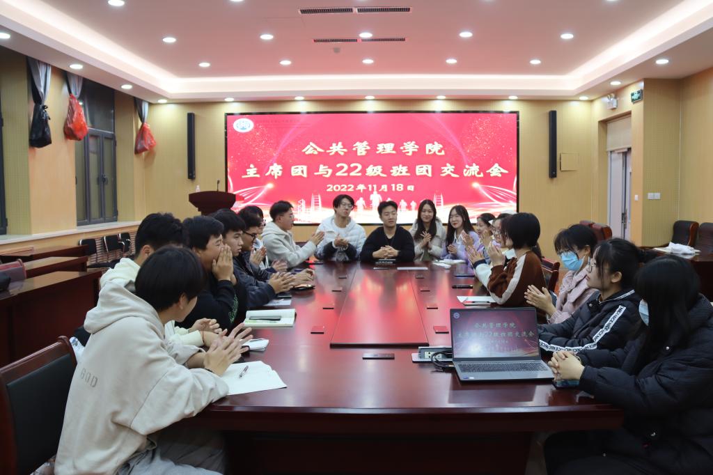 为加强学生会与班级之间的沟通,坚持从同学中来,到同学中去,同时促进班级建设,帮助新生班委成长,11月18日晚,公共管理学院于圣井校区8128召开学生会主席团与22级班团交流会。此次会议由学生会主席团副秘书长穆清主持,2022级各班班长、团支书及公共管理学院学生会主席团成员参加。