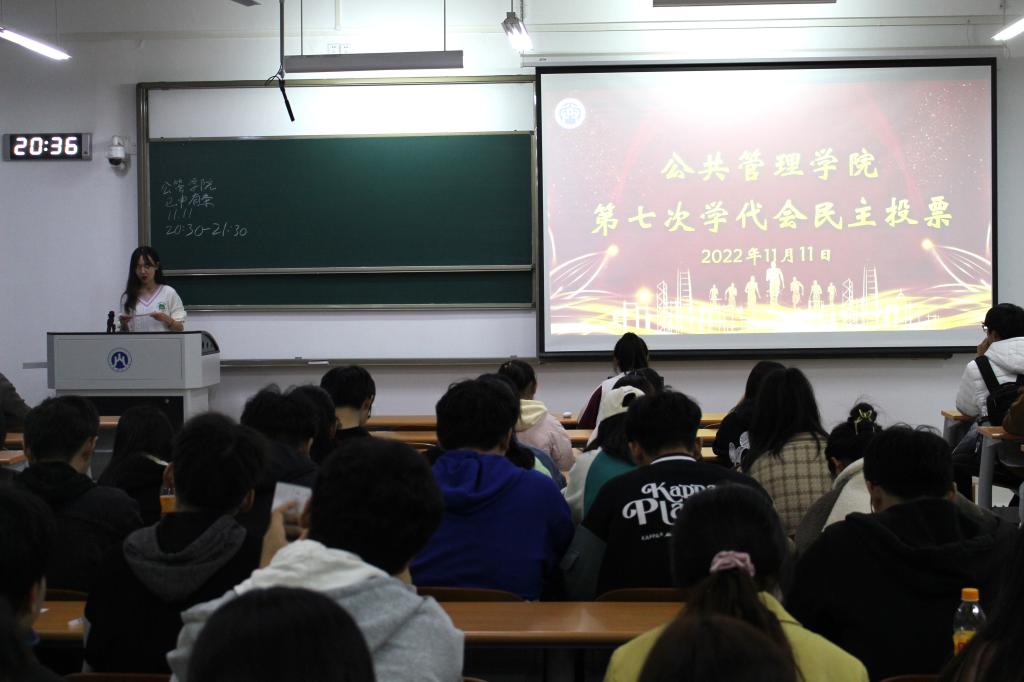 11月11日晚,公共管理学院第七次学代会民主投票大会于圣井校区8112教室顺利举行,大会由公共管理学院学生会主席团成员陈佳凝主持,20、21、22级各班代表参会。
