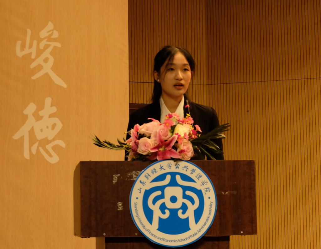 2020级劳动与社会保障1班刘锦如作为优秀老生代表发言。她举例论证了“得大一者得先机”“厚积而薄发,迎接机遇”的观点,希望新生们有详细的人生规划,主动、大胆尝试,打破信息差,与师长、同学们多多交流。