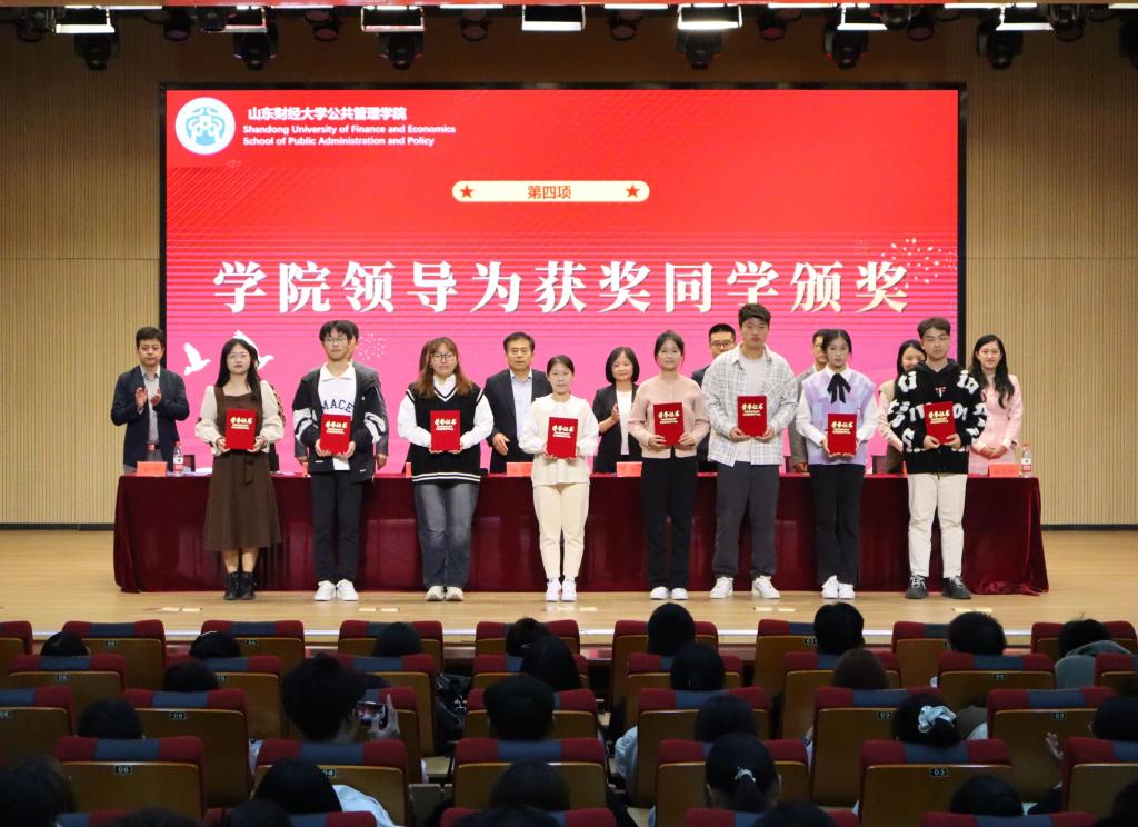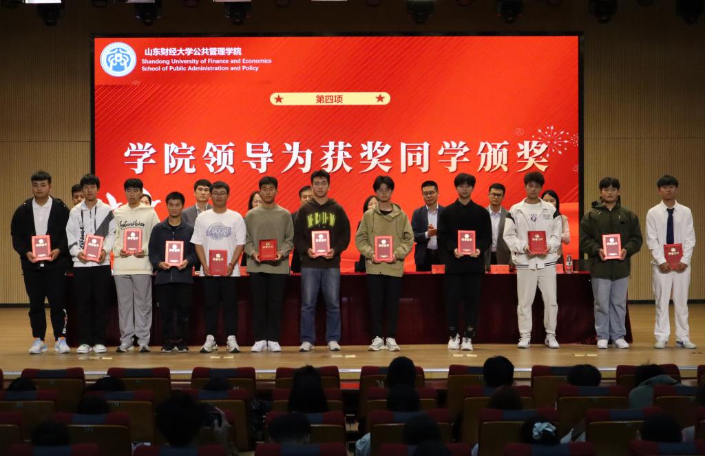 学工办主任张辉宣读2023级优秀代理班长团支书、优秀军训志愿者与优秀军训学生的获奖名单。在激昂的音乐声中,学院领导为获奖同学颁奖。