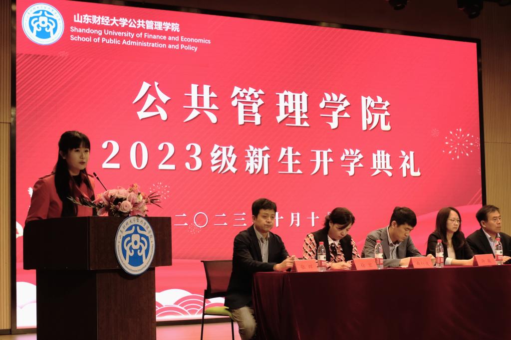 云收夏色,梧叶惊秋,在这秋色满园的美好季节,我们迎来了崭新的希望。10月19日下午,公共管理学院2023级本科生新生开学典礼在圣井校区大学生活动中心报告厅隆重举行。学院党委书记张红旗,院长贾海彦,副院长罗微、曲衍波、姜琪,劳动与社会保障系主任徐宏,学工办主任张辉,就业办主任韩步彤,新生辅导员张志斌出席,2023级全体新生参加。大会由学院党委副书记许薇主持。