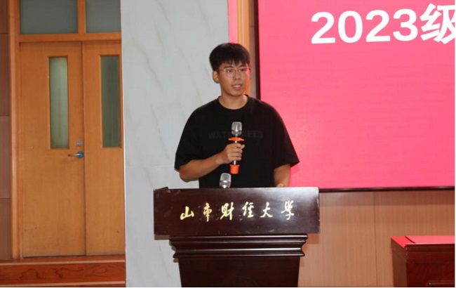 社会保障专业的王得成作为新生代表发言,他分享了自己的求学备考之路,表达了开启研究生生活的喜悦之情,并讲述了新时代下,不断提升学习力、行动力的重要性。他代表全体新生承诺,将秉持着“克明峻德,格物致知”的精神,脚踏实地、笃定前行,立志成为全方位、高素质的人才。