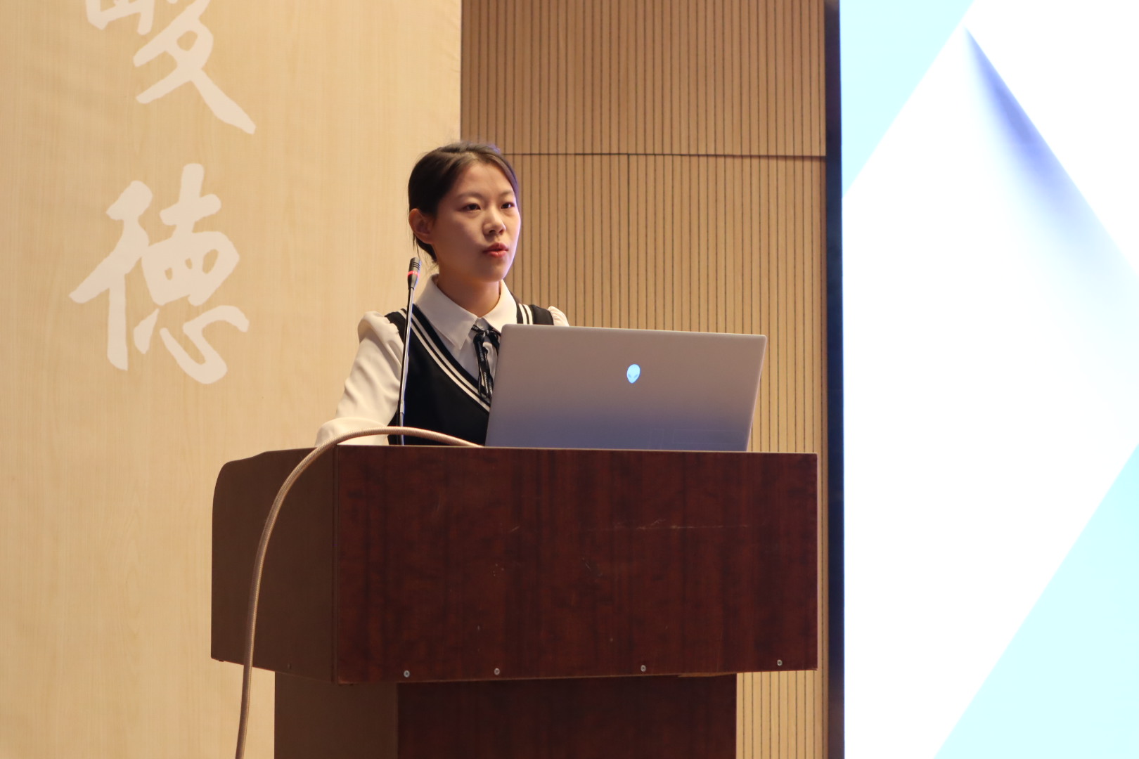 2022级行政管理1班班长林大凯为大家带来了“奋楫笃行,臻于至善”的分享。他借用图片引申出“德才相依,谓之君子”,具备责任、仁厚、坚韧、正义的良好品德是每位同学的必备品质。在日常生活中培养爱好,使自己在班委工作和学习生活间保持平和稳定的心态。