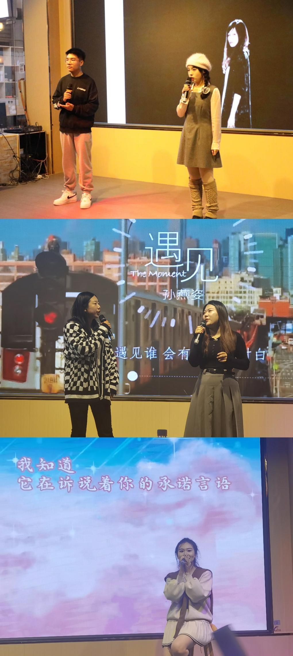晚会进入第三篇章:青春脉搏。歌曲《But U》活力四射,展现青年人的蓬勃精神,研会干部集体献唱歌曲串烧《爱笑的眼睛+遇见+喜欢你》带动了全场活跃的气氛,频频引起全场大合唱。
