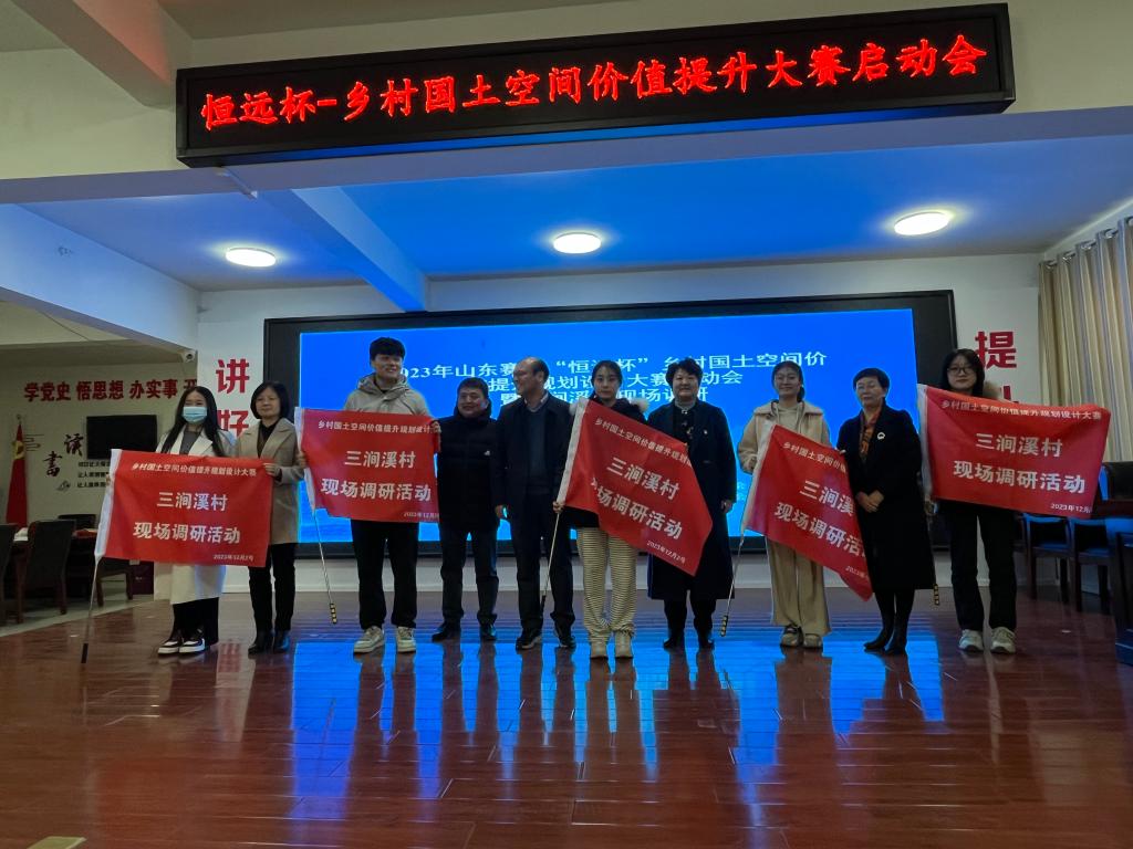 12月2日,由中国国土经济学会主办,我校与山东农业工程承办、山东省恒远地理信息技术有限公司、山东省国土空间规划协会等单位协办的第二届全国大学生乡村国土空间价值提升规划设计大赛(山东赛区“恒远杯”)启动会暨三涧溪村现场调研活动成功举办,来自我校、山东农业工程学院、山东农业大学、山东师范大学、山东建筑大学、济南大学、齐鲁师范学院等高校的100余名师生参加了活动。