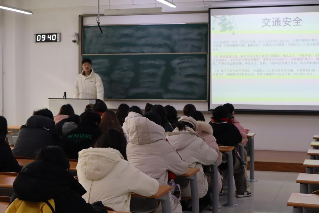 为严肃考风考纪,同时增强学生假期安全意识,12月18日至22日,公共管理学院于圣井校区8号教学楼开展“安全意识记心间,诚信考试我践行”主题教育班会。本次主题班会由2022、2023级辅导员张志斌老师组织召开,2022级、2023级部分班长代表主讲,两年级全体学生参加。