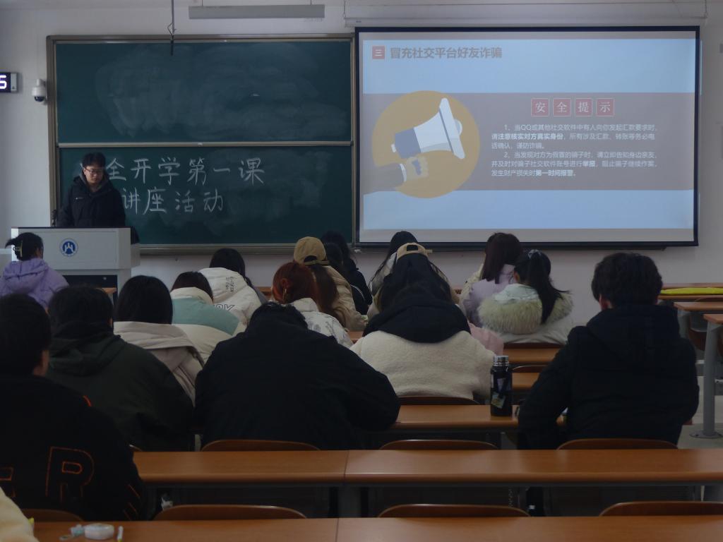 在安全教育方面,各班班长告诫同学们务必提高警惕,日常生活中要保护好自己的人身安全。包括心理安全、公寓安全、防溺水安全、消防安全、交通安全、饮食安全、网络安全等,并展示了相关案例。安全高于一切,各位同学在校园内外保护好自己,尽量避开可能遭受侵害的环境和因素;对财产安全的保护也必不可少,当前,校园贷、传销、电信诈骗等诈骗方式层出不穷,班长们提醒各位同学务必保护好个人信息,警惕未知来电和不明信息,提高个人判断能力,遇到困难及时向家人老师朋友求助。