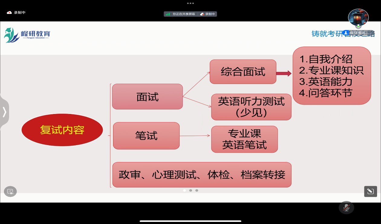 对于广大同学比较担心的英语复试环节,钟老师结合自身经验,通过图片、视频等多种方式对复试英语进行详细讲解。从英语自我介绍、未来发展规划等常见口语问题等为同学们的回答提供了多项方法和建议,并强调要注意发音、用词等细节。钟老师形象生动的讲解为同学们充分有效准备英语面试给予了极大的帮助。讲座过程中,多名同学针对自身的问题进行积极提问,钟老师做出了认真详细的解答。