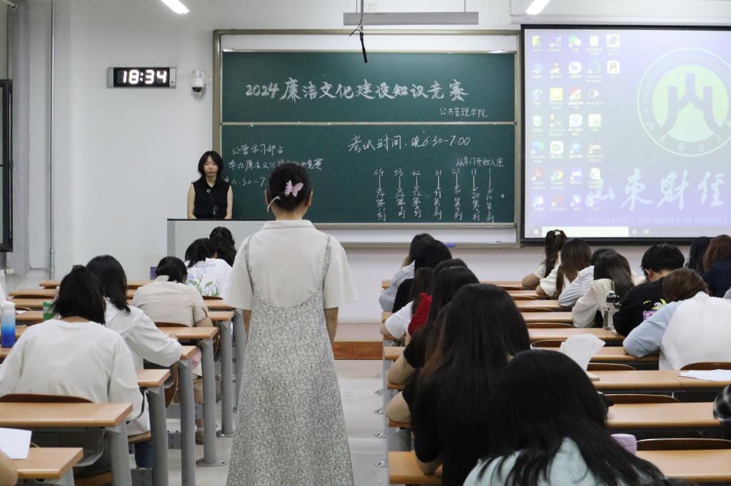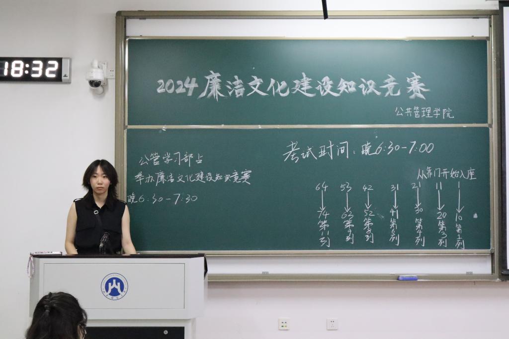 为了深入贯彻落实党中央关于廉洁文化建设的指示精神,进一步加强大学生廉洁意识教育,推动培育风清气正、崇廉尚洁的公共管理学院风气,6月2日晚,公共管理学院于圣井校区8-128会议室举办“廉心同行,智慧青春”廉洁文化建设主题知识竞赛。本次活动由公共管理学院学生会学习部主持,2021级至2023级学生参加。